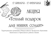 Территориальная организация Общероссийского Профсоюза образования Вахитовского и Приволжского районов г.Казани объявляет акцию «Теплый подарок для наших солдат» ко Дню Защитника Отечества с 17 января по 17 февраля 2023 года.