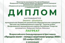 Поздравляем агитбригаду детского сада «Эколята-дошколята» со званием Лауреата Всероссийского (международного) фестиваля «Праздник эколят-молодых защитников природы 2022» в номинации «Творческое выступление команд образовательных учреждений»