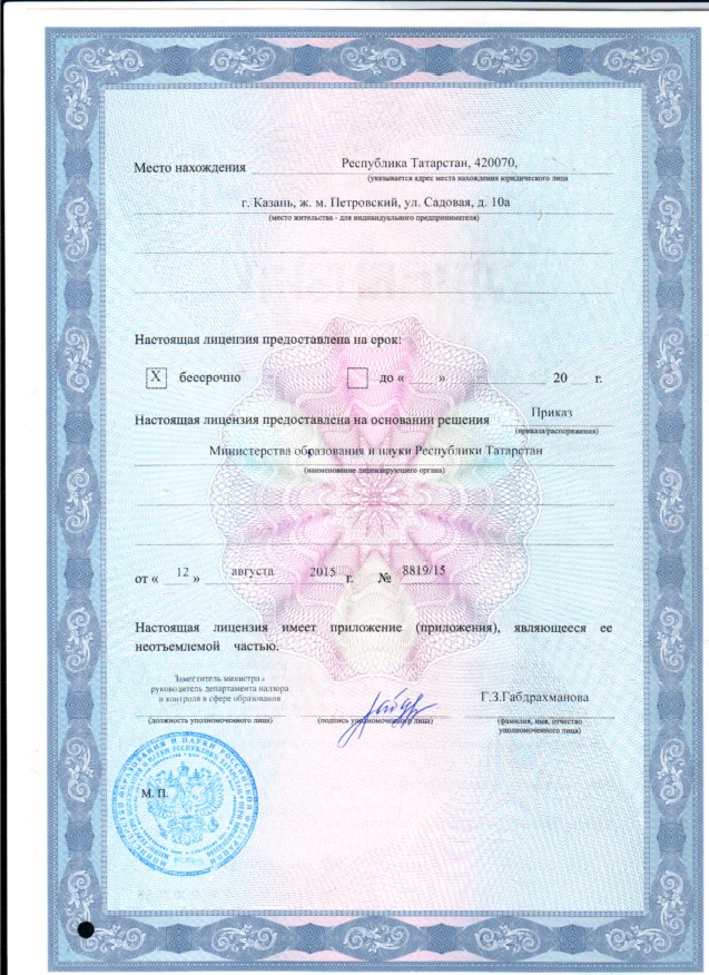 Лицензия на осуществление образовательной деятельности