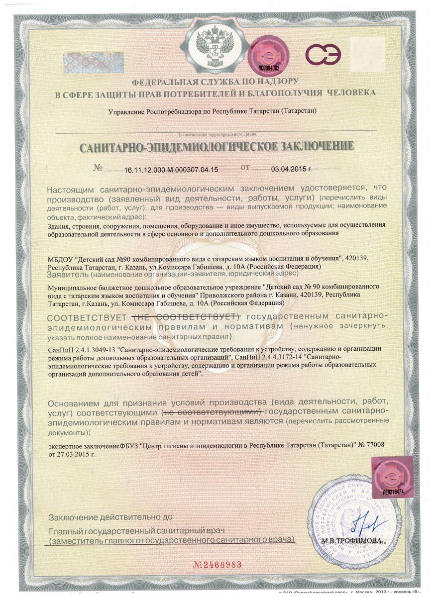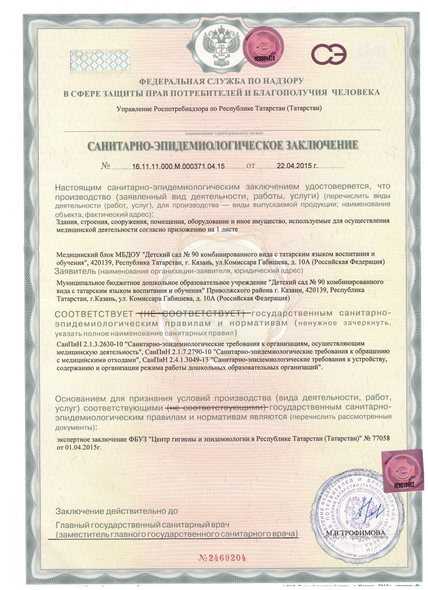 О передаче гос имущ в муниц собств Санитарно-эпидемиологическое заключение2