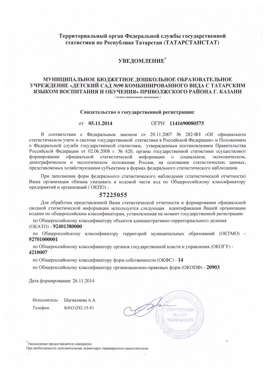 | Короткое название: | МБДОУ «Детский сад №90 комбинированного вида с татарским языком воспитания и обучения» Приволжского района г.Казани |