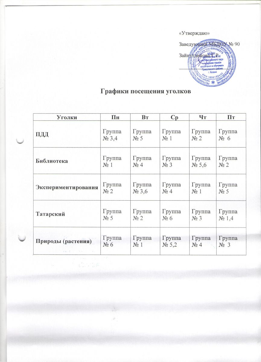 21. Графики посещения уголков