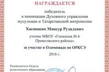 27 апреля в рамках международной научно-практической конференции "Взаимодействие органов государственной власти: региональный аспект" в Доме Дружбы народов были подведены итоги республиканской олимпиады по ОРКСЭ. Ученик 5Д класса Хасаншин Мансур (учитель Зелепукина Л.Г.) был награжден дипломом победителя. ПОздравляем!!!