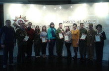 23.02.16. Ребята из поискового отряда гимназии №6 получили грамоты от Совета ветеранов. Грамоты вручали Владимир Сергеевич Савинов, племянник Героя героя Советского Союза, и представитель министерства труда, занятости и социальной защиты Эльмира Ильгизаровна Фаляхутдинова