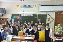25.12.15. Учениками начальной школы были собраны новогодние подарки для воспитанников Отделения отказных детей при 18 горбольнице. Для детей были переданы сладкие подарки, игрушки, средства личной гигиены..
