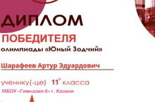 Поздравляем Шарафеева Артура, ученика 11 В класса, ставшего победителем республиканской олимпиады «Юный зодчий», прошедшей на базе КГАСУ
