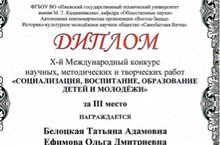 От всей души поздравляем наших учителей технологии, Ефимову Ольгу Дмитриевну и Белоцкую Татьяну Адамовну, с III местом в X-ом Международном конкурсе научных, методических и творческих работ "Социализация, воспитание, образование детей и молодежи" !