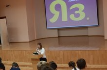 Сегодня наша гимназия принимала участие во Всемирной образовательной акции " Татарча диктант". Текст диктанта читала диджей радио "Булгар" Наиля Гибадуллина.