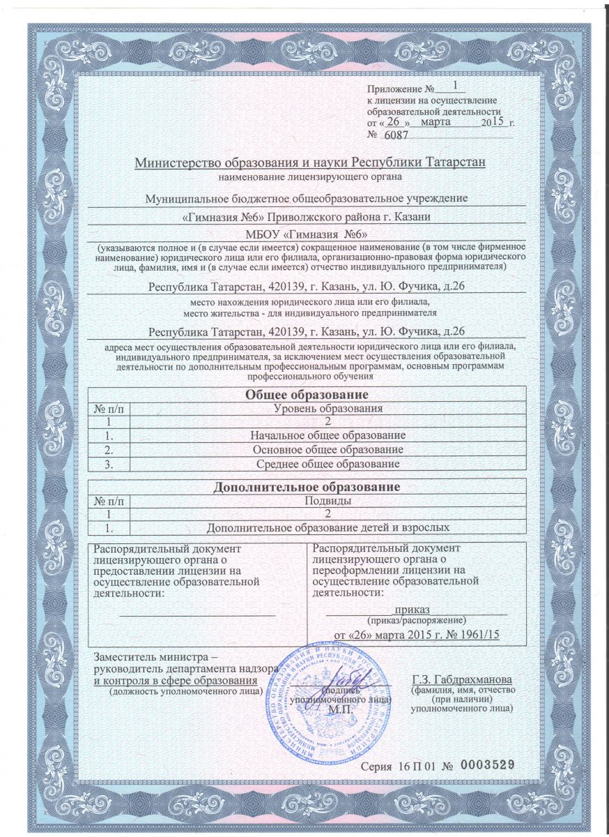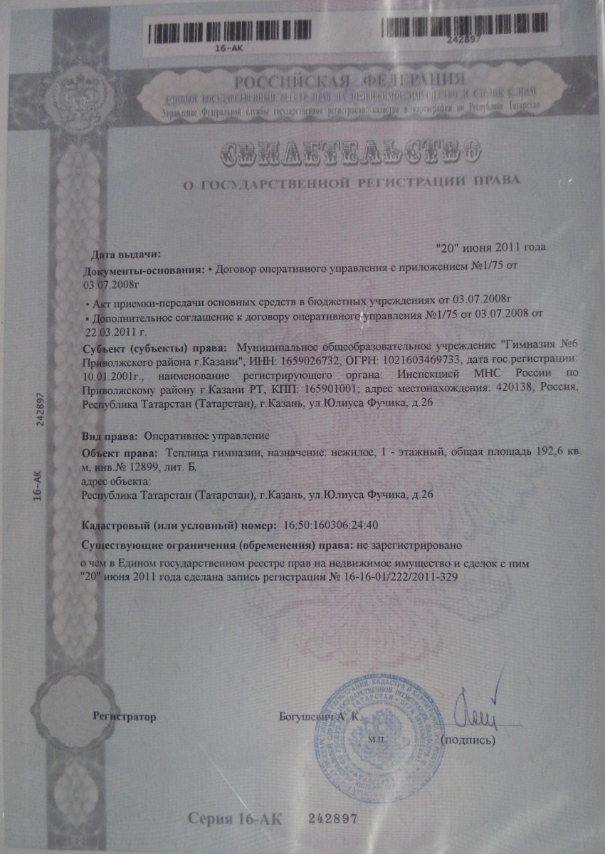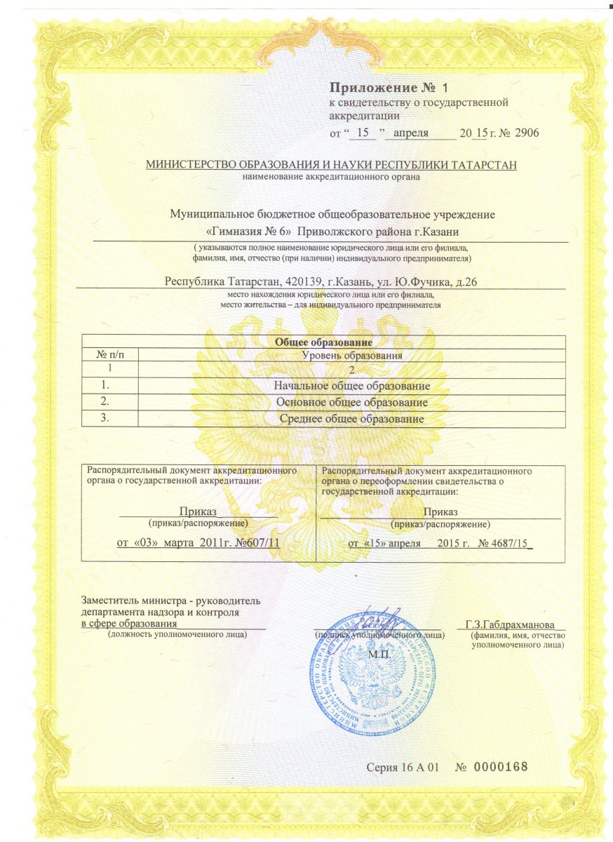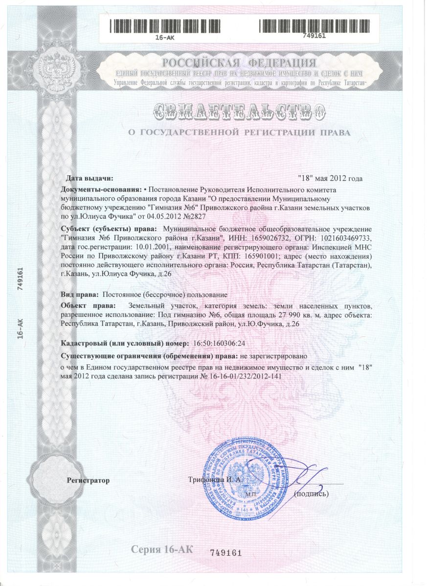 - Свидетельство о внесении в единый государственный реестр МБОУ Гимназия 6