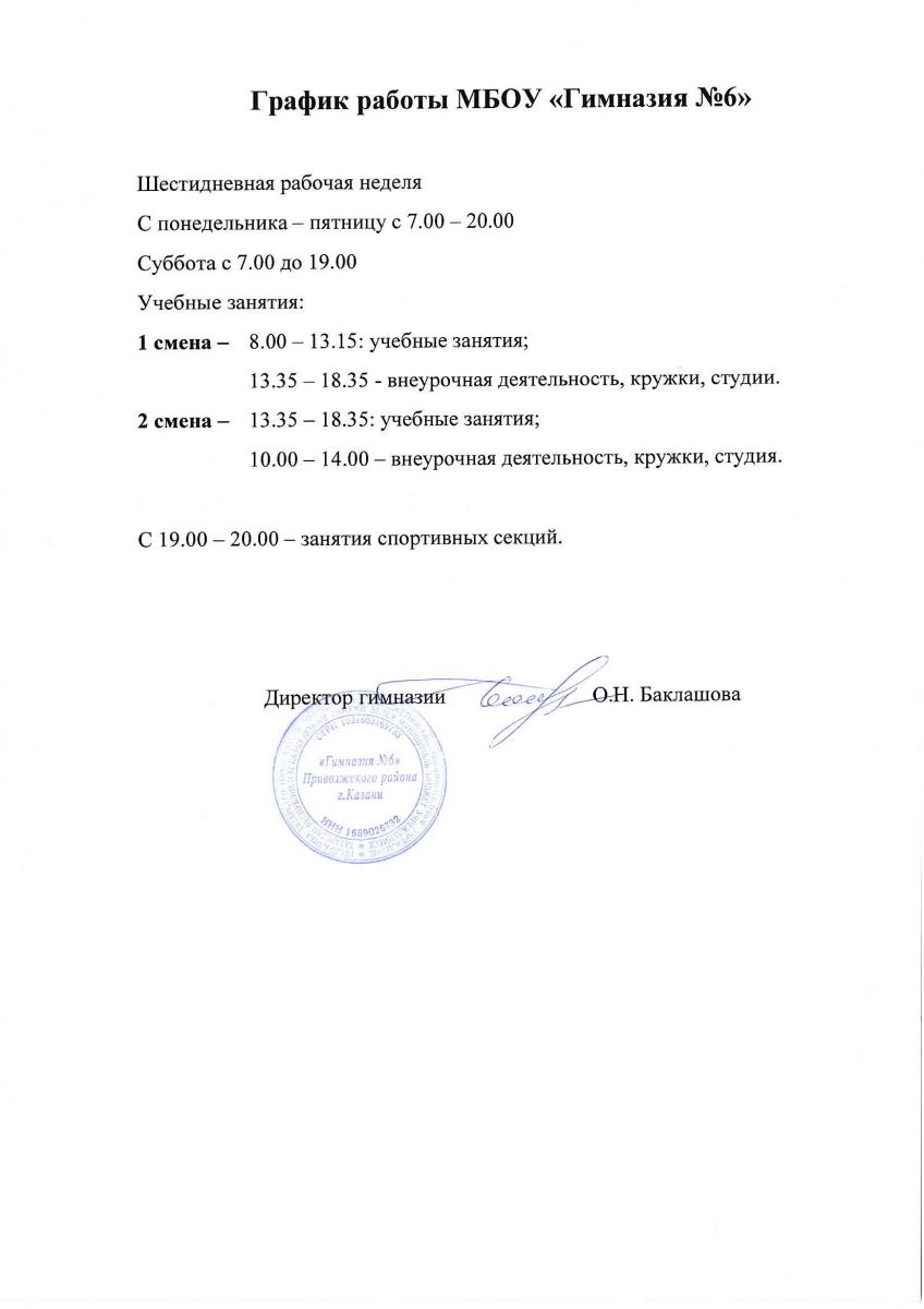 График работы гимназии/Гимназиянең эш графигы