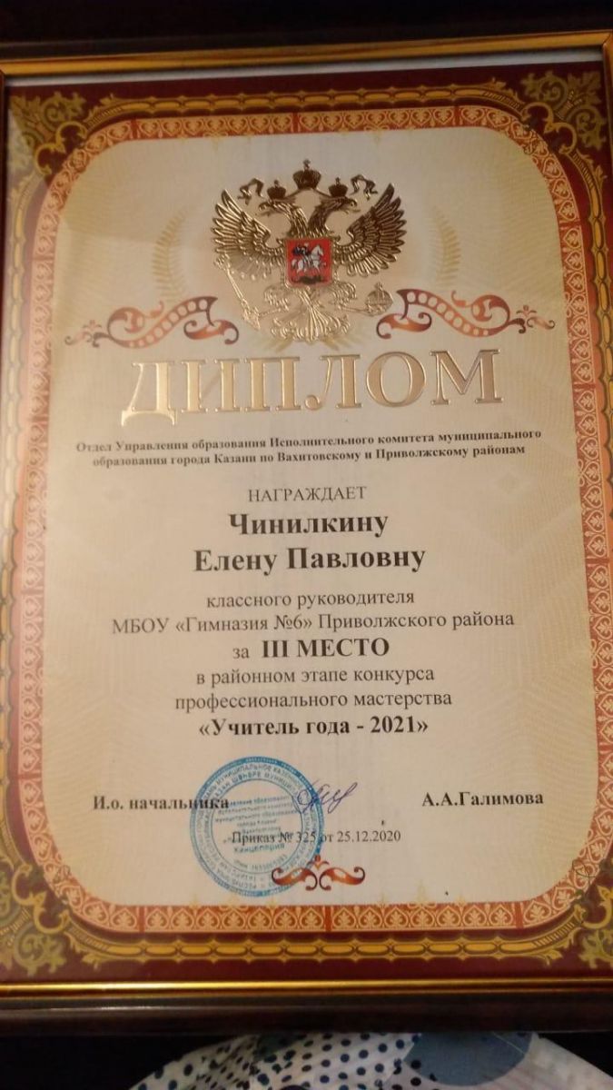 «Классный руководитель» - Чинилкину Елену Павловну – Диплом III степени;