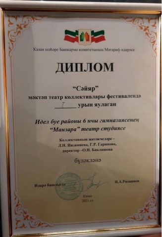 Муниципальное бюджетное общеобразовательное учреждение «Гимназия №6» Приволжского района г. Казани/Казан шәһәре Идел буе районының " 6 нчы Гимназия» муниципаль бюджет гомуми белем бирү учреждениесе