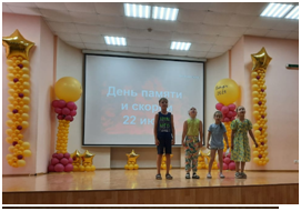 Опубликовано: 22.06.2021Сегодня в пришкольном лагере "Солнечная страна" прошли мероприятия, посвященные Дню памяти и скорби. Это литературно-музыкальная композиция «Память сердца», военно – спортивные игры. Каждый отряд исполнил героическую военную песню. Трогательные, щемящие, маршевые и лирические военные песни никого не оставили равнодушным.