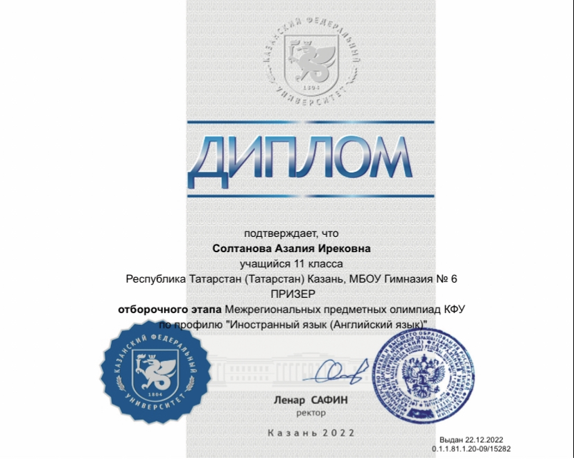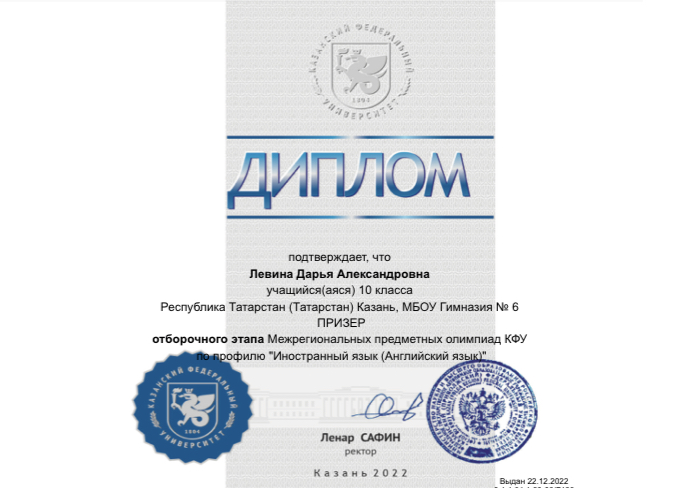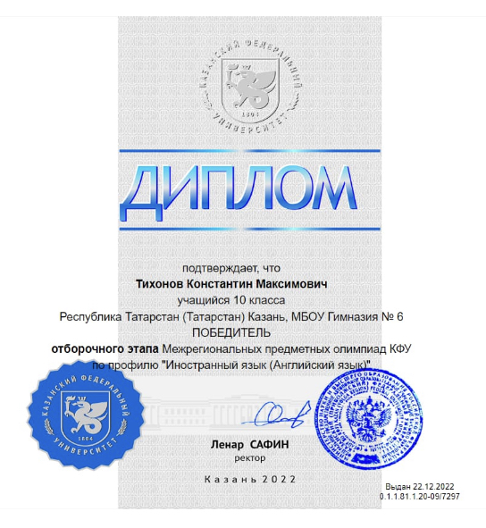 Поздравляем победителя и призёров отборочного тура Межрегиональных предметных олимпиад КФУ