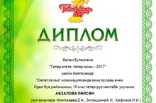Казан шәһәре Вахитов районының “Балалар иҗат үзәге”ндә ТАССР ның атказанган артисты, драматург, театр эшлеклесе, актер, режиссер Кәрим Гали улы Тинчуринның 130 еллыгына багышланган «Татар кызы, Татар егете-2017» бәйгесе булып узды. Район сайлап алу этабында мәктәбебез данын яклаган 9 нчы б сыйныфы укучысы Абзалова Ләйсән - “Сәләтле кыз” номинациясендә җиңү яулады.