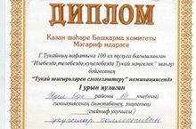 Г. Тукайның вафатына 100 ел тулуга багышланган “Илебездә, телебездә, күңелебездә Тукай мәңгелек” шәһәр бәйгесенең “Тукай шигырьләрен сәхнәләштерү” номинациясендә 1 нче урынны алган 9А сыйныфы укучыларын (Гайнетдинов Алмаз, Зиннәтов Нияз, Латыйпова Гүзәл, Миңлехуҗин Инсаф, Низамова Алинә) тәбрик итәбез!!! Аларга киләчәктә дә зур уңышлар телибез!
