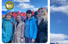 Мәктәпнең хезмәт коллективы традицион Беренче май демонстрациясенә кушылды. Тынычлык! Хезмәт! Май! -