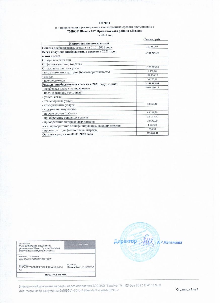 Отчет о привлечении и расходовании внебюджетных средств в 2021 году