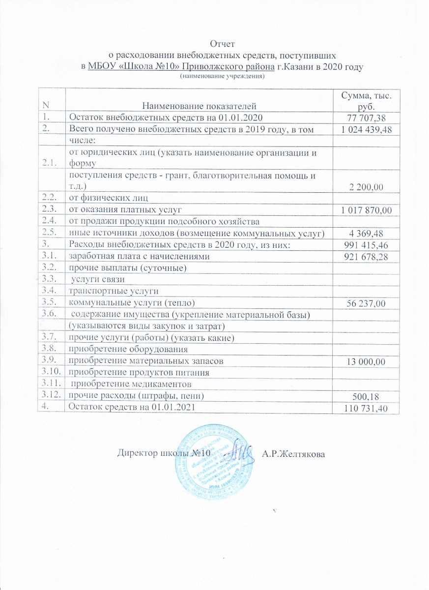 Отчет о привлечении и расходовании внебюджетных средств в 2020 году