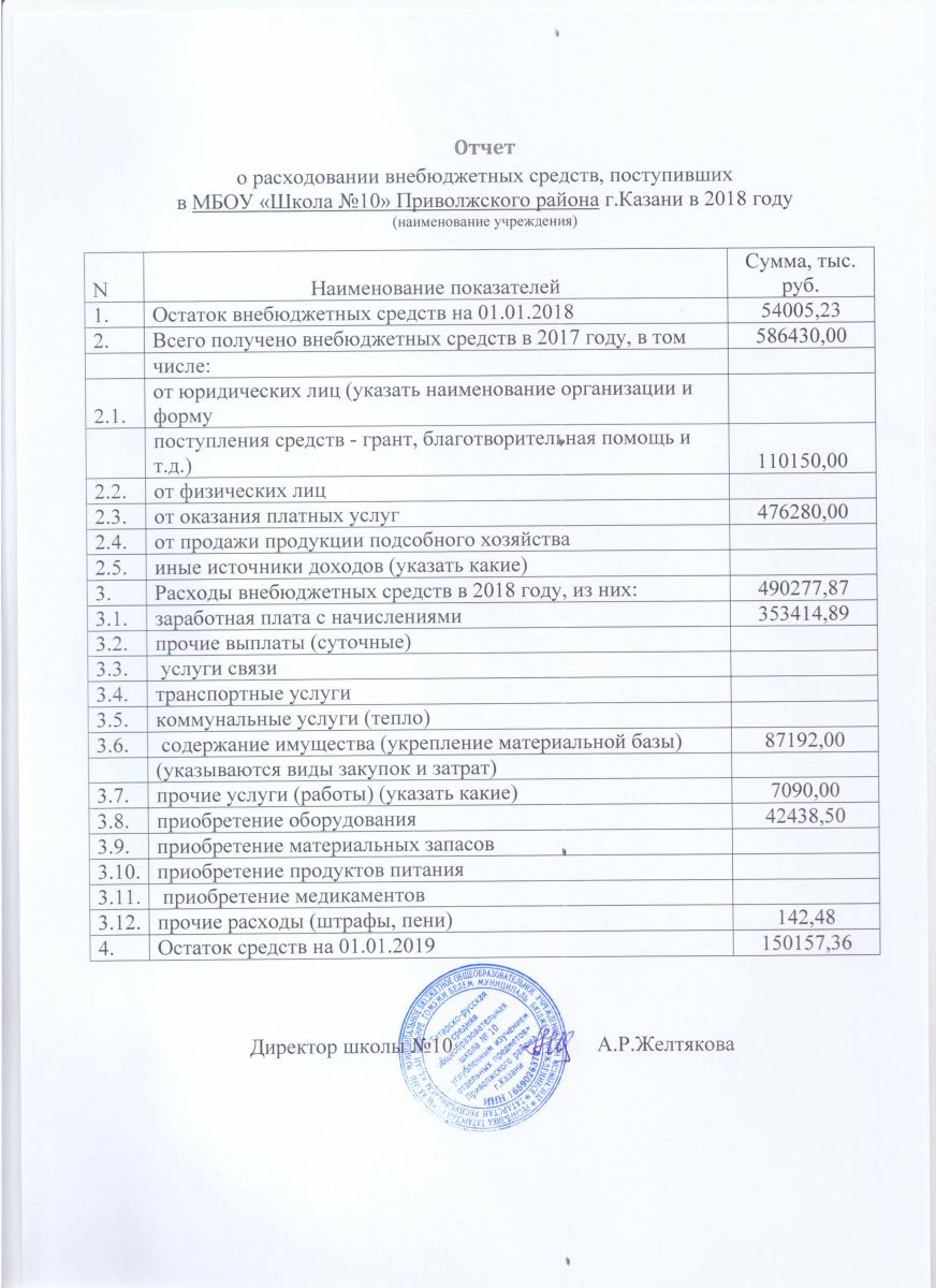 Отчет о привлечении и расходовании внебюджетных средств в 2018 году