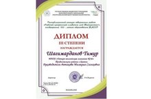 Поздравляем ученика 6А класса Шагимарданова Тимура (руководитель Фатахова М.С.) c III местом в республиканском конкурсе творческих работ «Рабочей профессией славится мой Татарстан!», посвященный 100-летию образования ТАССР. Желаем Тимуру дальнейших успехов!