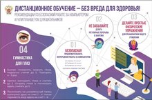 В соответствии с переходом на дистанционное обучение в целях сохранения здоровья школьников и правильной организации режима дня Министерство просвещения Российской Федерации разместило инфографику с рекомендациями для школьников и родителей по ведению здорового образа жизни в период дистанционного обучения. Далее: