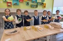 В рамках программы "Разговор о правильном питании " (руководитель программы - Шарафиева Л. В., отв.по питанию Минубаева А. Ю.) с первоклассниками была проведена беседа на тему: " Полезная корзинка". Учащиеся познакомились с группами витаминов, расширили и закрепили знания о влиянии на организм овощей.