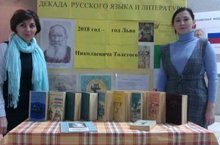Еще несколько плановых мероприятий декады русского языка и литературы прошло сегодня в гимназии: День виртуальных экскурсий «Литературная Казань», посвящѐнный творчествам Л.Н.Толстого и М.Горького, выставка книг писателей в библиотеке (отв.Сафина З.Р.), урок-викторина "Своя игра" в 9А классе по творчеству Л.Н.Толстого (отв. Давлетшина Ф.А.)