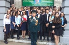 Праздничная линейка, посвященная великому празднику началась с оваций, которыми гимназисты встретили фронтовика, ветерана ВОВ, полковника в отставке Владимира Алексеевича Фурсова. Почетный гость каждый год становится главным участником праздника Победы в гимназии №16. После театральных зарисовок, военных танцев и стихотворений, вся гимназия почтила память погибших в Великой Отечественной Войне минутой молчания.