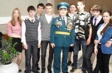 Традиционными в гимназии стали встречи фронтовиков и тружеников тыла Великой Отечественной войны. В торжественной обстановке сегодня состоялась встреча учащихся с подполковником в отставке Хакимовым Вадутом Хакимовичем, детство которого прошло в тяжелое военное время. С живым интересом старшеклассники слушали рассказ о трудном военном времени и боевых событиях за освобождение Кубы («Карибский кризис») , участником которых стал рано повзрослевший Вадут Хакимович.