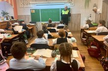 Сегодня прошли беседы старшего инспектора ДПС ГИБДД МВД по Республике Татарстан, старшего лейтенанта полиции Шамсутдинова Рената Зуфаровича с учениками 3-4 классов на тему «Безопасная дорога в школу».