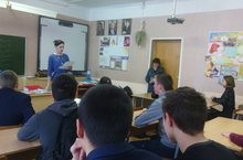 В рамках профориентационной работы перед учащимися 9 класса выступила Бородина Жанна Николаевна, кандидат юридических наук, доцент кафедры гражданского и предпринимательского права КИУ им.В.Г.Тимирясова. Она рассказала о порядке и условиях поступления в колледж.