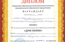 Поздравляем Мельникову Диану и Демьянову Рамину, учениц 8 класса, занявших 2 место в III НПК школьников "Дни науки" (научный руководитель Хаертдинова А.Н.). Мо-лод-цы!