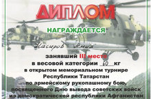 Поздравляем Насирова Амила, ученика 10 класса, занявшего 3 место в открытом мемориальном турнире Республики Татарстан по армейскому рукопашному бою, посвященному Дню вывода советских войск из демократической республики Афганистан. МОЛОДЕЦ!