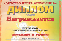 Поздравляем Галееву Элину, ученицу 8 класса, дипломанта 2 степени международного фестиваля-конкурса детского и юношеского творчества "Детство цвета апельсина", проходившем 22-23 ноября 2014 года.