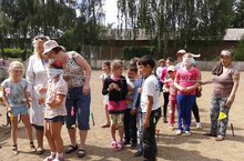 Пррошел познавательный час "Герои спорта". Затем девочки сразились в пионербол, а мальчики - в футбол.