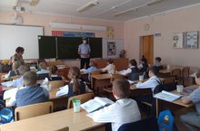 Перед учащимися школы выступил инспектор ДПС ГИБДД УМВД России по г.Казани Корников Александр Николаевич. Он призвал ребят соблюдать правила безопасного поведения на дороге в период летних каникул.