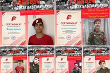 Юнармейцы и курсанты ВПК "Пламя" Алиев Фарид, Александрова Ангелина, Вахитова Аделина, Васильева Вероника, Разгоняева София, Гимранова Амира, Шмигидина Анастасия, Шустова Анастасия, Князева Таисия, Котяшова Елизаевта, Герасимова Ксения, Шафигуллина Диана, принявшие участие во Всероссийской акции "Физкультмиллион", посвященной 75-летию Победы в Великой Отечественной войне, получили сертификаты участников. Поздравляем!