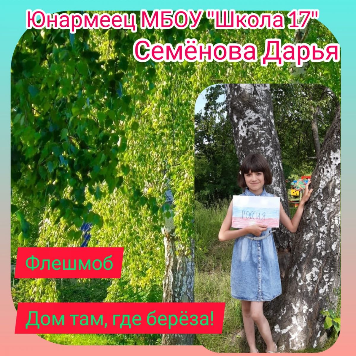 Юнармейцы и курсанты ВПК "Пламя" Семенова Дарья, Семахина София, Александров Александр присоединилась к флешмобу "Дом там, где береза".