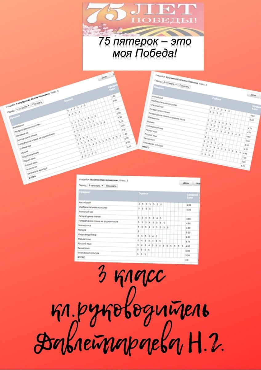 "75 пятерок - это наша Победа!" 07.05.2020