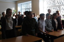 Перед учащимися 1-9 классов выступили члены школьного музея, члены "Клуба юных политологов" Ивлева Милана и Разрывина Ангелина. Девочки рассказали о подвиге жителей и защитников Ленинграда, отстоявших город в условиях тяжелейших испытаний в годы войны. Ребята почтили минутой молчания память погибших.