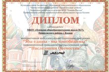 В интерактивной интеллектуально-социальной программе"Мы едины-мы непобедимы" инновационного гражданско-патриотического проекта "Наследники Отечества", проходившей в Центре внешкольной работы Приволжского района ,команда нашей школы заняла 3 место. Поздравляем!
