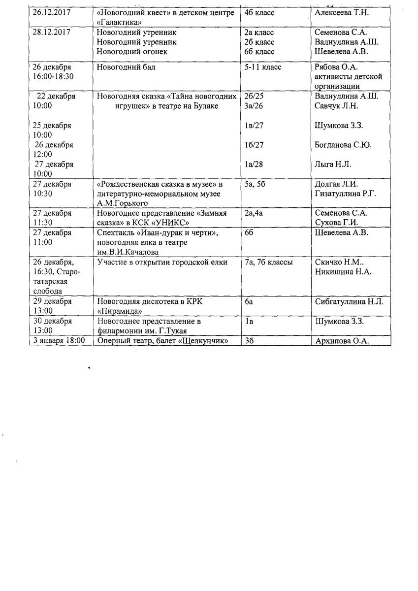 План проведения новогодних мероприятий 26.12.2017