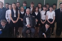 6 мая в 5а классе (классный руководитель Франк Наталья Николаевна) прошел классный час, на который был приглашен Кашипов Марс Назиович. Этот необыкновенный человек работает в нашей гимназии уже на протяжении долгих лет. Его музыка всегда с нами, в будни и праздники т необыкновенно красиво звучит тембр аккордеона Марса Назиповича. Лишившись матери в раннем возрасте, проводив отца на фронт, он вносил свой вклад в Победу игрой на гармошке для раненых бойцов, которые лечились в госпитале, располагавшимся в здании Кукморской школы. О своем детстве в военные годы, о творческом пути, о незабываемых встречах с героями Великой отечественной войны (Гани Сафиуллиным,Александром Покрышкиным) и еще многими воспоминаниями поделился Кашипов М.Н. с учащимися.