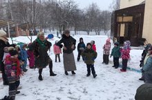 Каждый год в масленичную неделю мы знакомим детей с традициями праздника Масленицы. Завершающим мероприятием недели проходят гуляния на свежем воздухе, посвященное Масленице, в котором принимают участие, как дети, так и сотрудники ДОО. Этот год не стал исключением и 25 февраля мы прощались с зимой. В гости к детям приходила баба-Яга, Зимушка-зима, Масленица. Дети рассказывали веселые стихи и прибаутки про Масленицу, водили хороводы, играли в русские народные игры, соревновались. После того, как все вдоволь повеселились, в гости к детям пришла Масленица и угощала всех блинами.