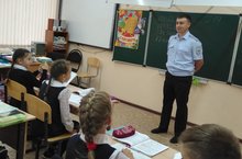 10 сентября инспектор ГИБДД Гурьянов О.П провел с учащимися 4а класса беседу о безопасном поведении на дорогах, напомнил правила безопасного поведения во время нахождения в общественном транспорте, а также о необходимости наличия световозвращающих элементов у детей на верней одежде и школьных портфелях.