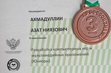 Наш ученик 9Б класса Ахмадуллин Азат заняла 3 место на региональном этапе чемпионата по профессиональному мастерству «Профессионалы» Республики Татарстан 2024 в компетенции «Разработка компьютерных игр и мультимедийных приложений(Юниор)».