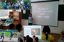 Сегодня – День Памяти и скорби. Этот день напоминает нам обо всех погибших в боях, замученных в фашистской неволе, умерших в тылу от голода и лишений. Мы скорбим по всем, кто ценой своей жизни выполнил святой долг, защищая в те суровые годы наше Отечество. Ребята посмотрели презентацию о войне, о том, как она начиналась, какие потери мы несли в начале войны. Мы отдаем дань глубокого уважения и благодарности тем, кому обязаны сегодняшним днем, тем, кто показал всему миру пример беззаветного служения Родине, тем, чьи имена золотыми буквами вписаны в летопись национальной и мировой истории. На тематическом концерте, посвящённом Дню памяти и скорби, ребята рассказывали стихотворения, пели песни о войне. День закончился спортивными играми и соревнованиями.