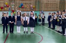 Школьная учебная неделя началась с традиционного поднятия флагов и исполнения гимнов Российской Федерации и Республики Татарстан учащимися 3-4 классов.
