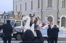 Ученики нашей школы вместе с завучем Рахматуллиной Р.Р. 31.12.12 приняли участие в мероприятиях по встрече Деда Мороза из Великого Устюга. Дед Мороз начал знакомство с нашим городом у стен древнего кремля.